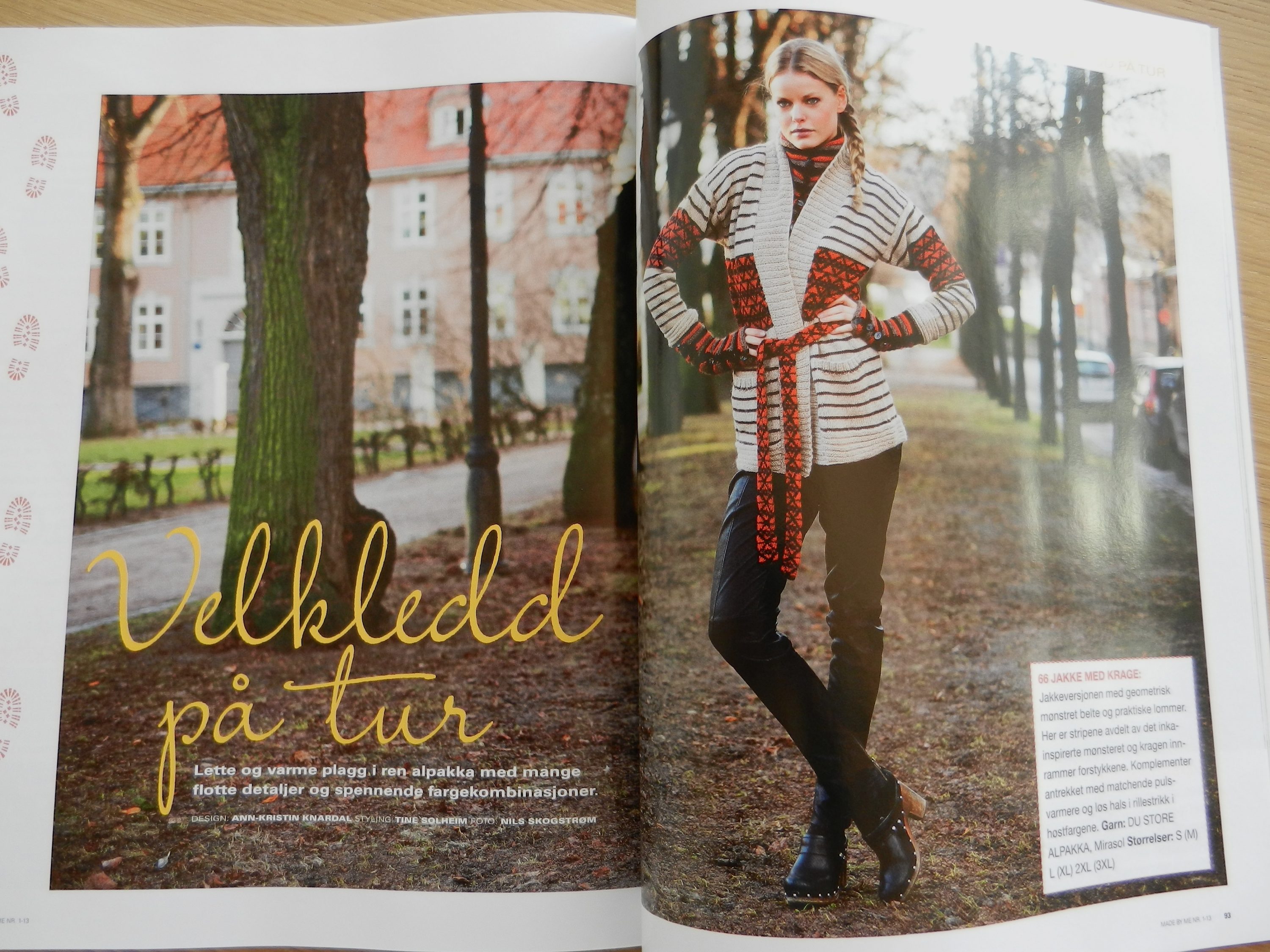 The latest issue of Made By Me came out on Monday, here in Norway. I have not submitted any designs, but I have written some of the picture texts, translated a number of the patterns from English into Norwegian, and formatted a number of the patterns. That is one part of my day job, the other much larger part is the translation of the previous issues of Made By Me – 3 in total – into English for both the UK and the US market where it will be sold as an app. The popular magazine covers Knitting, Crocheting, Sewing and Crafts and the latest issue contains a whopping 92 patterns, printed in a separate booklet. I love reading the designer portraits, the trend reports as well as studying the designs!
