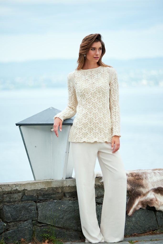 I know you have seen the Free Falling Pullover on my blog previously but you have not seen me wearing it, only the young model photographed by Harper Point Photography for Interweave Knits Fall 2017. So here are a few of the decent photos of me taken by my husband, where I am not pulling any faces, taken on a wet winter’s day in January on the terrace of our old house in Oslo. Yes, my face is nearly white due to the cold and the poor weather. The sweater was sent with the Norwegian postal service, Posten, and was missing for nearly a month before it finally arrived at its destination, so the name is very appropriate. My working title was Meili: Meili is from Old Norse and means the lovely one. With a Norse ancestory it has a built-in Wanderlust. Meili is a fitted pullover with two travelling central cables, divided by moss stitch and framed by stockinette stitch on the side. Each cable travels from the center towards the shoulder. The boat neck is modified by the short row shaping on the shoulder and ends in an i-cord bind off. Meili can easily be dressed up or dressed down, however your prefer.