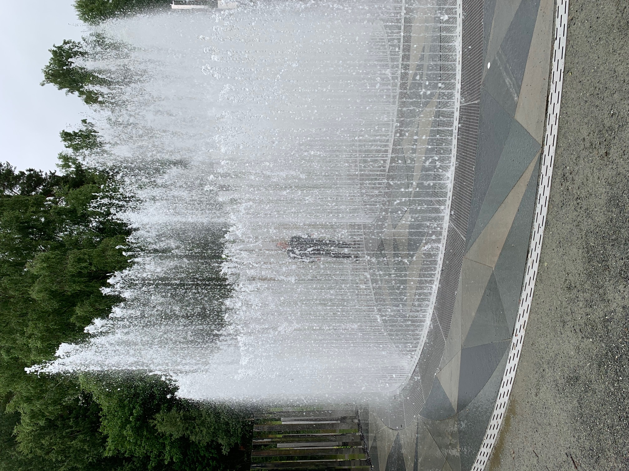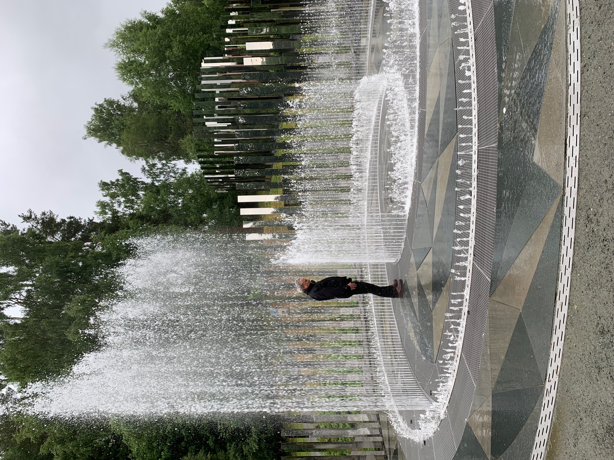 It is made by polished stainless steel, giant stones from the forests of Kistefos, Norwegian slater, Siberian maple, Norwegian moss and flora. Above you see Michael inside the fountain. When he came out, he only had a few drops of water on his shoulders…