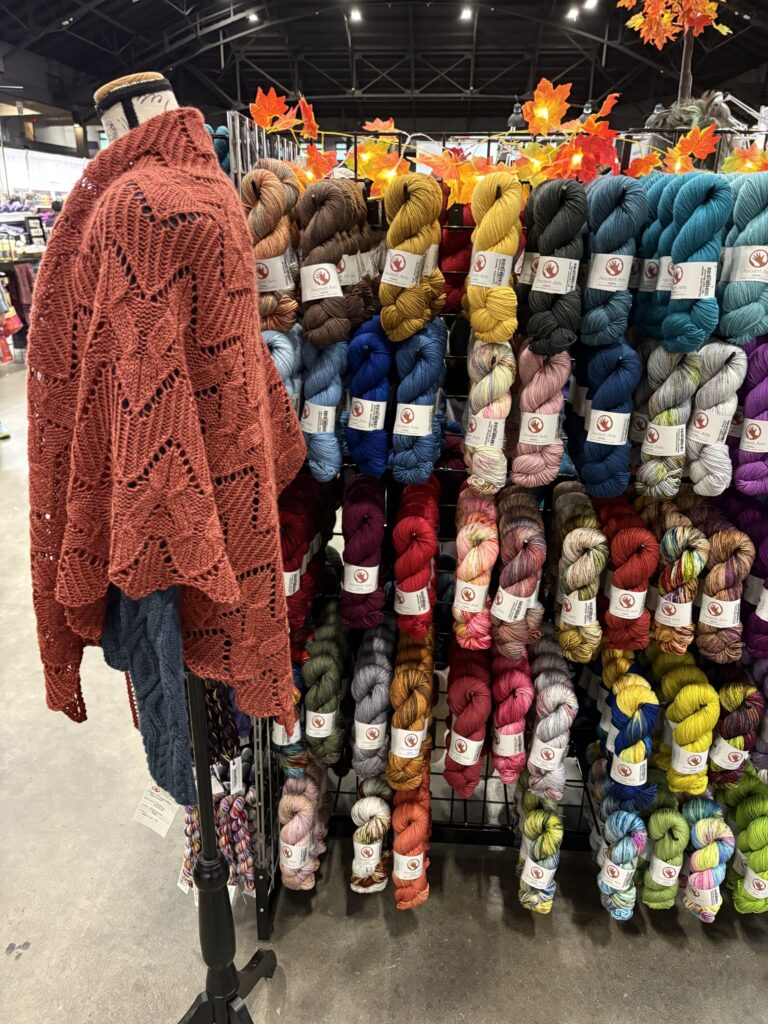 Here is a photo of the impressive SweetGeorgia stand. The hand dyed colours just blew my mind; no wonder their slogan is “unapologetic colour and craft since 2005”. There will be lots more to come in my October newsletter and vlogs from both KCV and SweetGeorgia on Patreon for my paid subscribers.