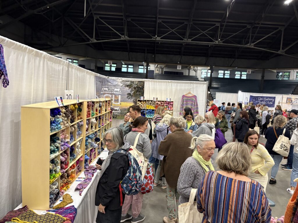 Above is the Koigo stand. In the market hall there were not only vendors but also a knitting lounge – provided by SweetGeorgia – a winding station and a separate area for emerging makers (new vendors). PNE is an old ice hockey rink, turned into an exhibition space – you can still glimpse the seating in the top right corner.