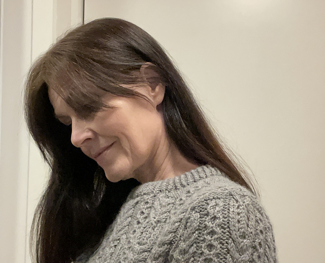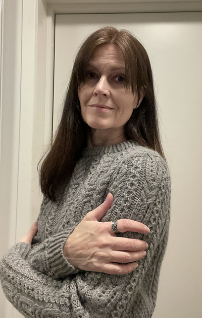Next out in the series of knitted by is the skilled Norwegian knitter and patron Laila, aka Troila on Ravelry, who took part in the test knit of Arine. Laila made size 2 and writes on her project page: “It was love at first sight! I wish I had the opportunity to get the original yarn for this project, but I’m too eager to get started at this point. I’m going to try “Mitu” from Rauma (already in my stash) and I really hope it will be close to the gauge I need. I’m very fond of this alpaca/wool blend and it is perfect for showing off textures. The color is not very exciting, but I can always make a lime green or shock pink next time, right?”