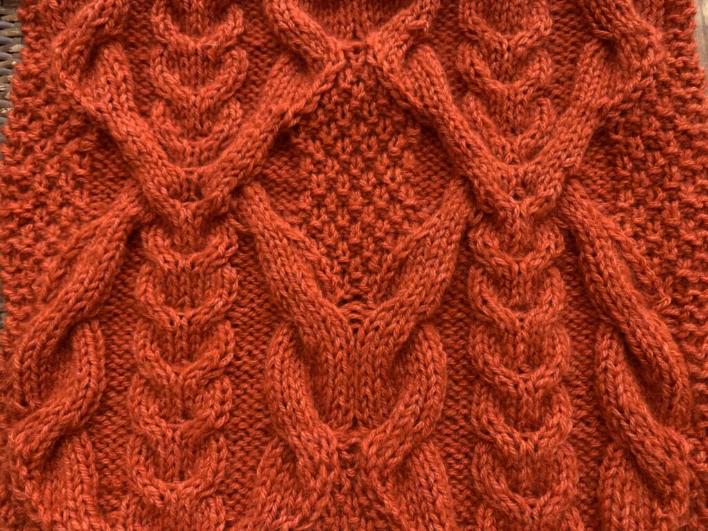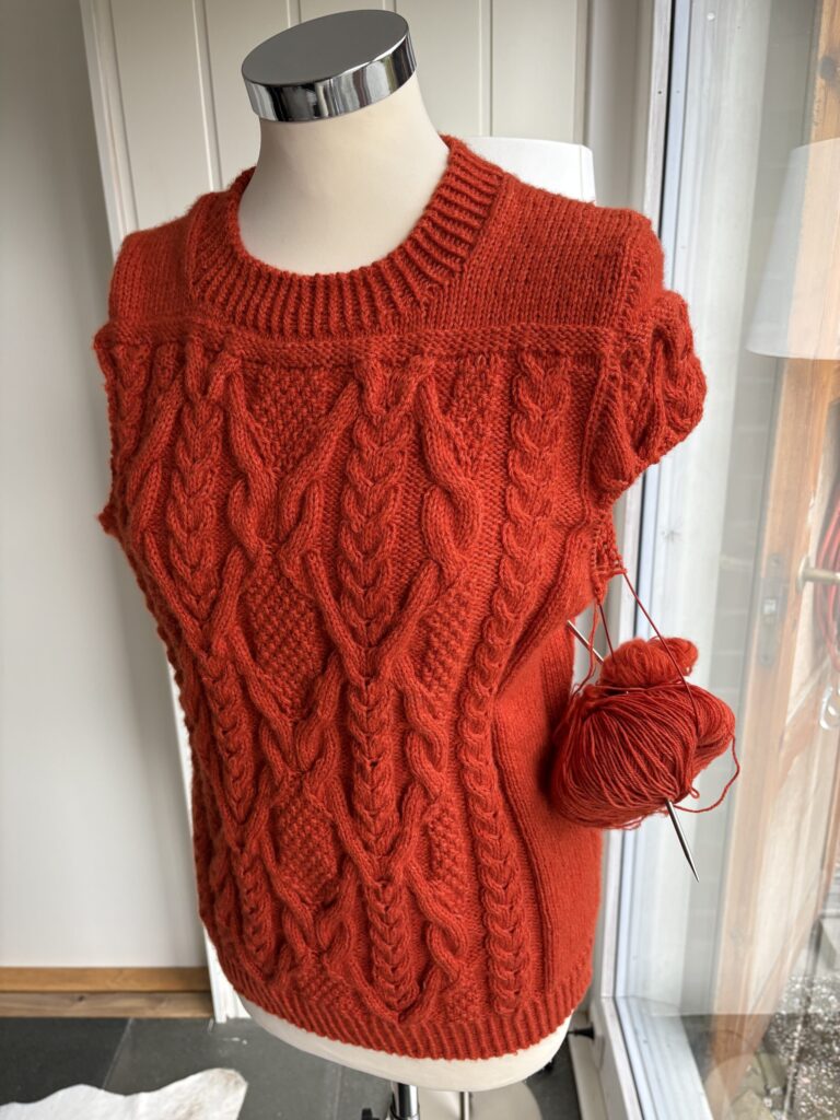 The test knit, held in my Ravelry group, begins on the 17th of November before its release, on the 8th of January 2026. The cable I used is the same I used for my Nora Sweater worked in a finer yarn, but this time I chose stockinette stitch in the sides to allow for the armhole increases to be made easily.