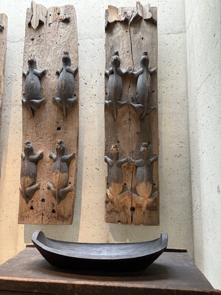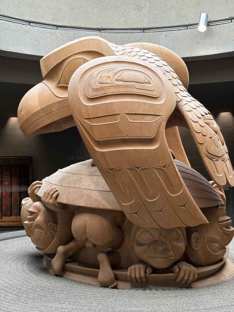 The most famous room was the Bill Reid Rotunda, placed upon a gun turret left over from Vancouver’s dubious defence effort of World War II, is the sculpture “The Raven and the First Men” made out of a very large block of yellow cedar by Bill Reid, commissioned by Walter Koerner, the major benefactor of the Northwest Coast collection. The sculpture was unveiled in 1980.