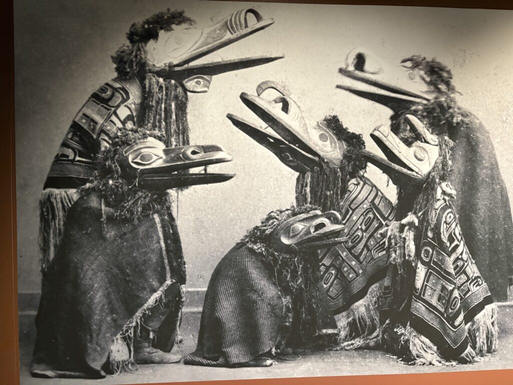 The museums textile collection was equally impressive. Here is a Button Blanket: “Button blankets have become one of the most respected and essential elements of First Nations ceremonial regalia on the Northwest Coast. Originally made from foreign materials acquired through the Hudson’s Bay Company, button blankets became a new version of ancient woven and fur robes. They continue to be made today with great creativity and pride, and are worn at community gatherings as well as public celebrations, political protest, and to show chiefly authority at legal challenges.”