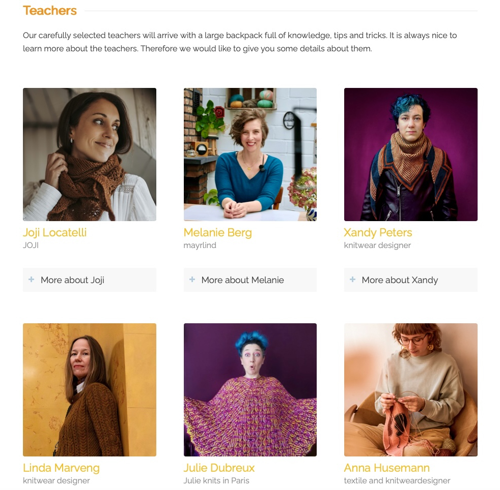 This will be the 6th yarn festival with an impressive line-up of 31 designers holding workshops.
