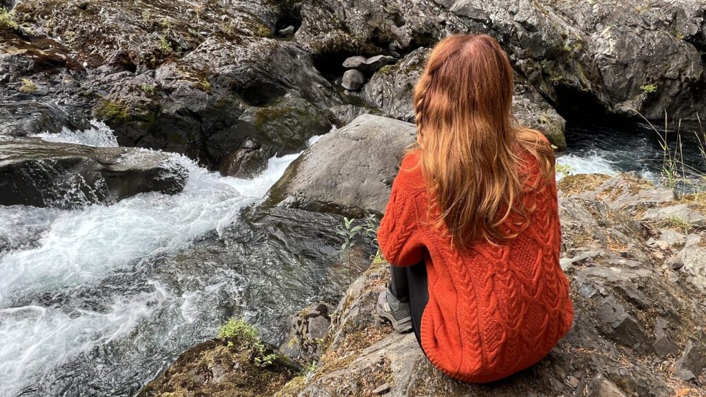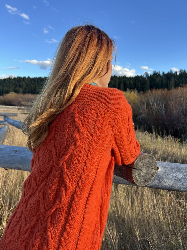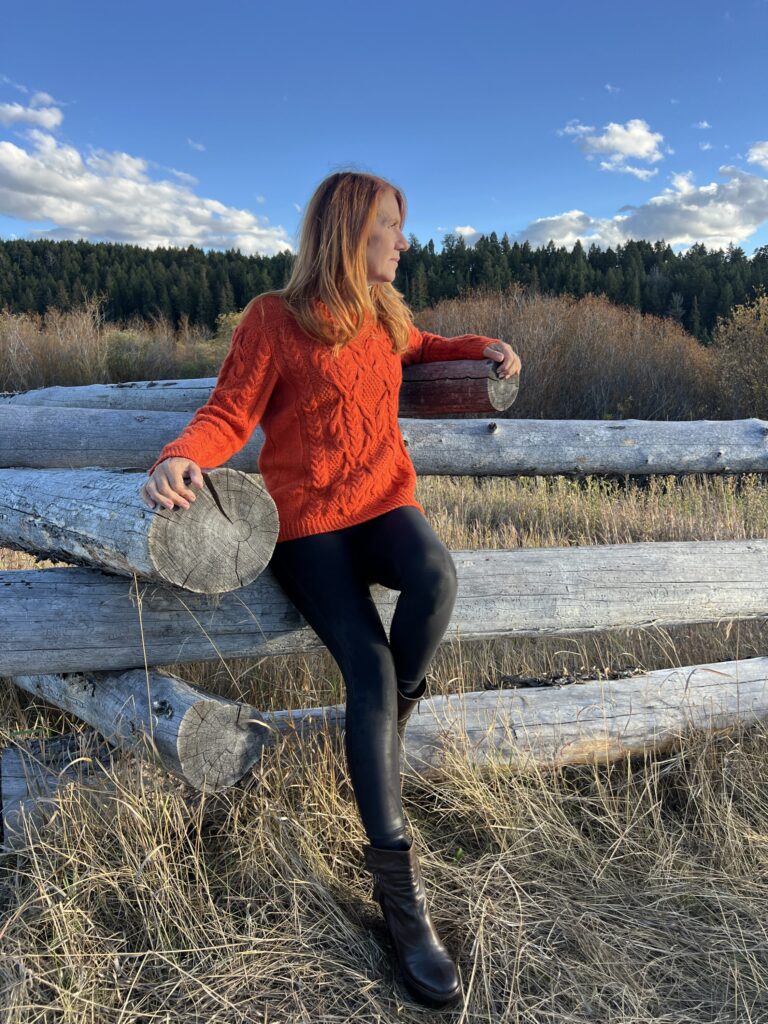 The next set of brilliant photos from the Audic photoshoot is of Kaen taken on their trip west in Montana in USA where they stayed at a friend’s ranch. Check out these scenic shoots that photographer Gael Audic took of his wife and model Rebekah, who is wearing the sample in size 2 with 15 cm/6 inches positive ease.