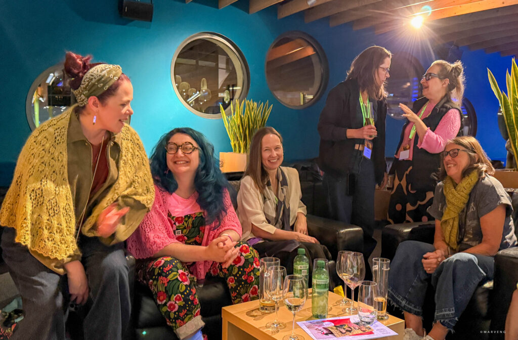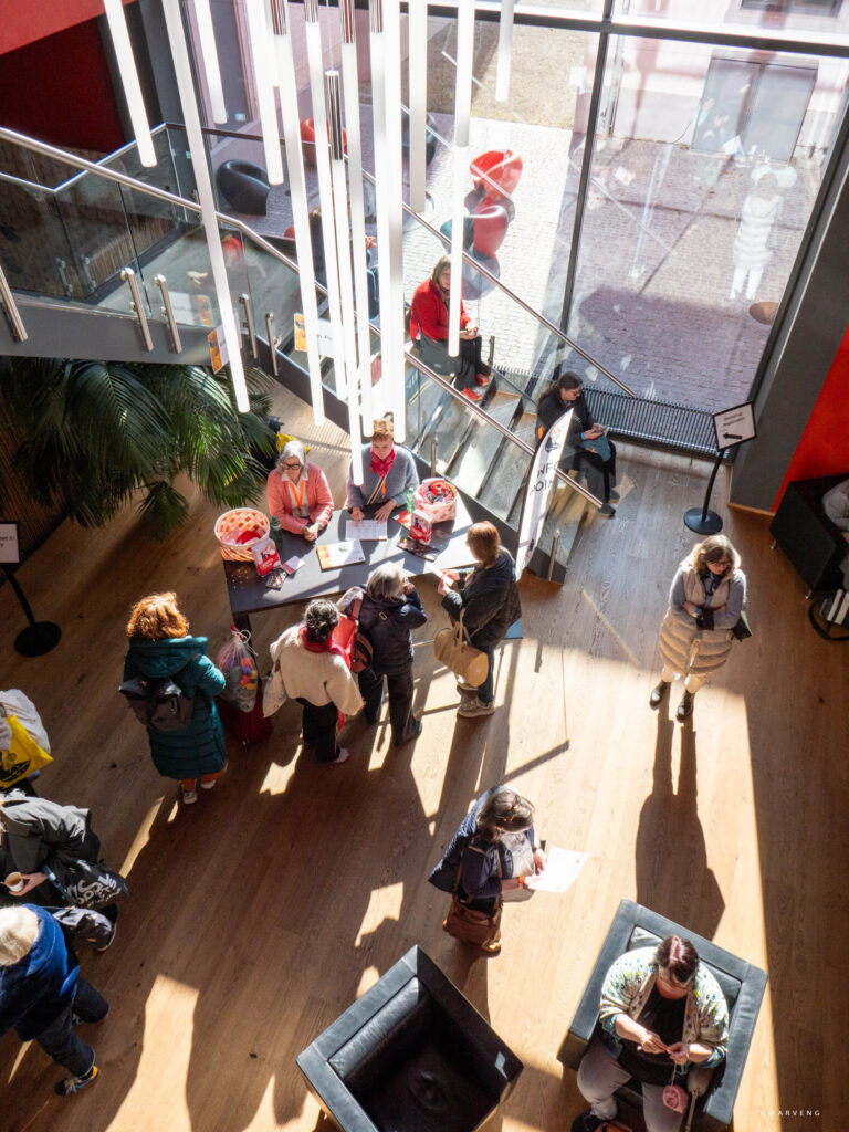 Not only was there a photo wall, it also had a camera box that printed out photos or that would post directly onto instagram. Conveniently, it was next to the Meet & Greet point. Hence when the Norwegian group from Stavanger, who I knew, arrived we had to take a photo. 3 of them are wearing a design made by Tone Cecilie Nystrøm, while I am wearing my Arine.