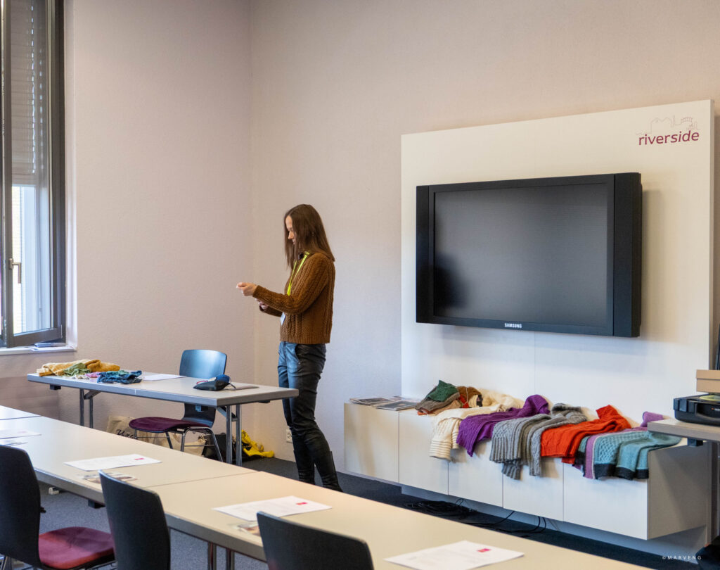 Teaching at the Swiss Yarn Festival from Friday to Sunday, felt like a 3-day long knitting party that never ended! Many of the designers (31) and vendors (76) stayed at the venue – Riverside – an old mill converted into a conference centre outside of Zurich, near the town of Glattfelden, and many of us had dinner together every evening!